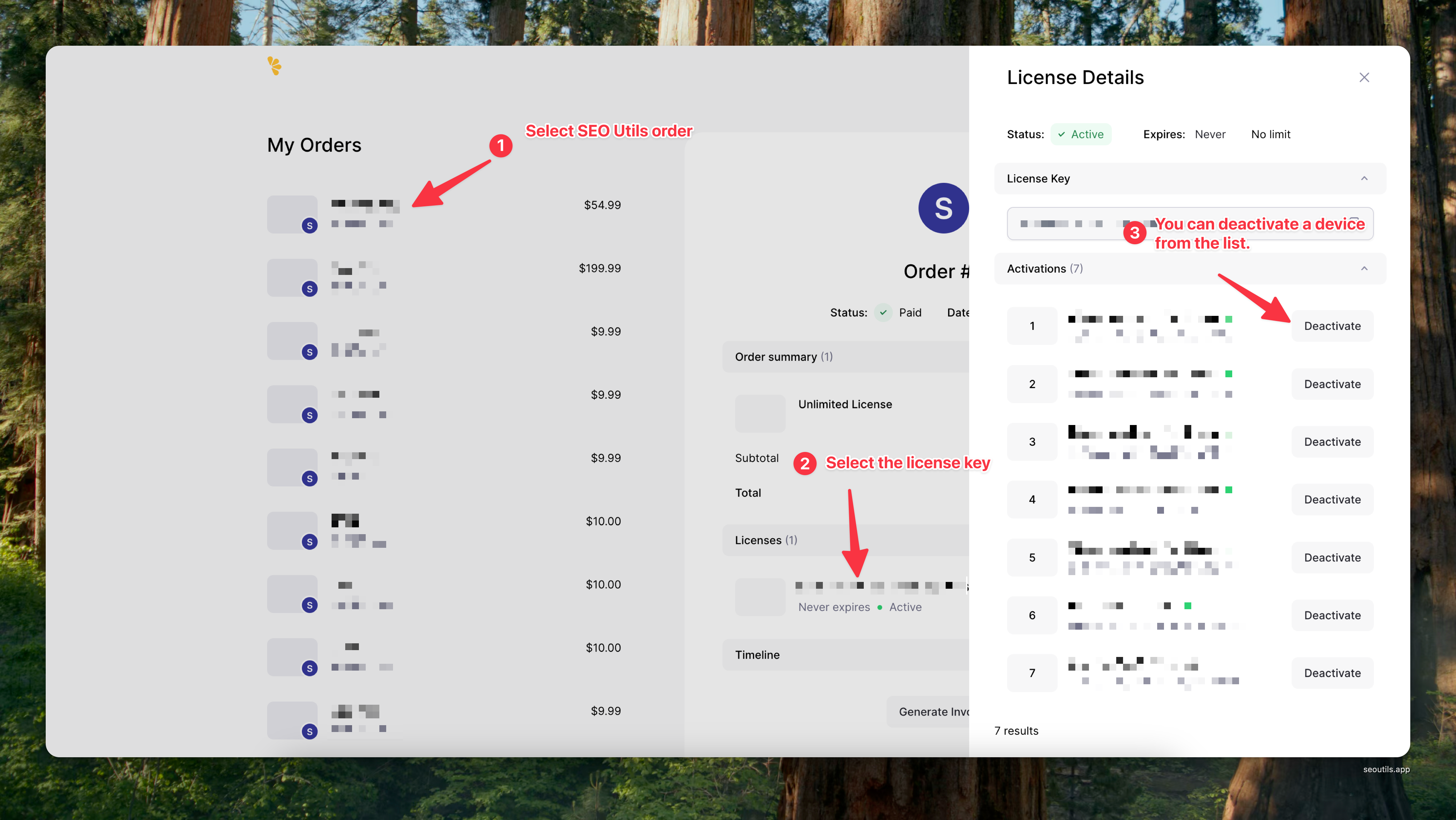 Visit <https://app.seoutils.app/manage-devices> to view and deactivate all devices activated on your license — even devices you no longer have access to.