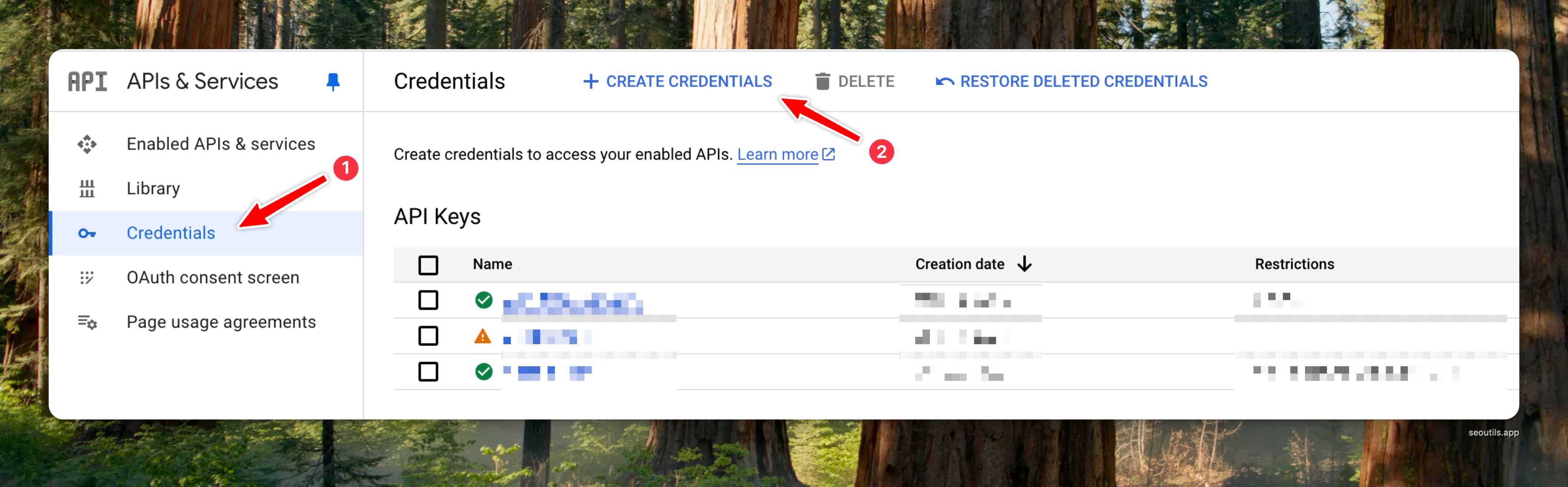 After enabling the API, go to the Credentials tab from the left sidebar. Click on the "Create Credentials" button and select "API Key."