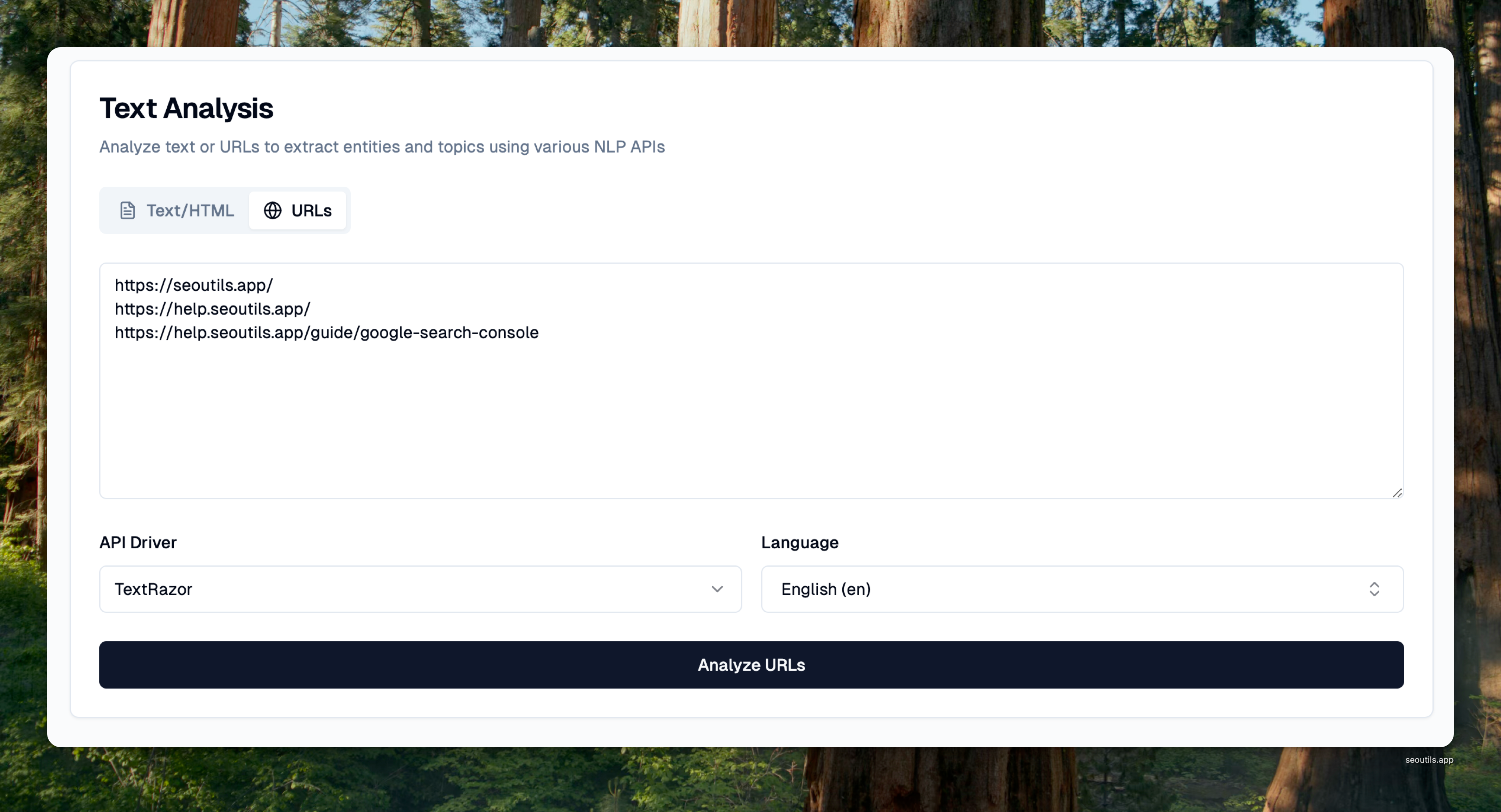 You can enter raw text, HTML, or multiple URLs into the provided input area.