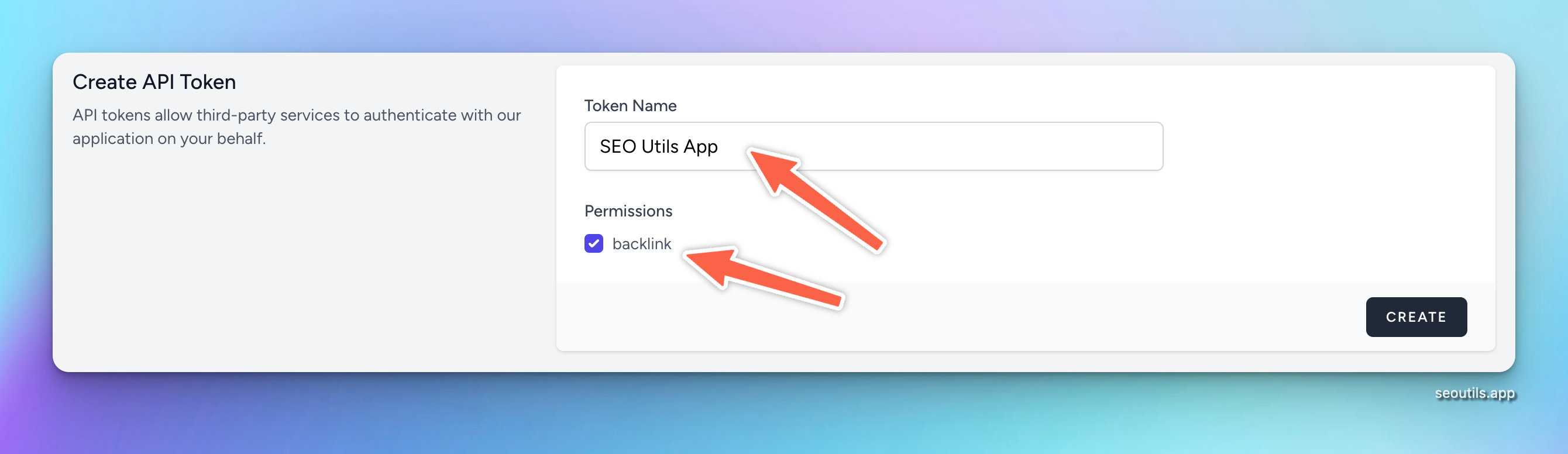 Step 2: Enter the "Token Name" and ensure that you check the "Backlink" permission so that the Token can have access to the Backlinks API.
