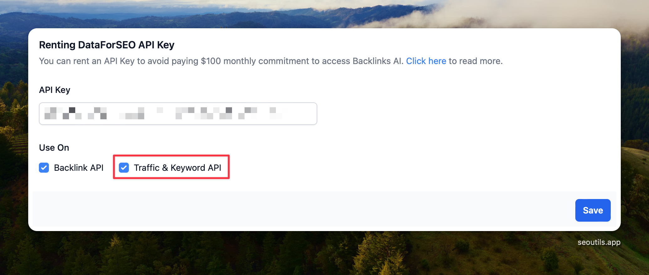 Make sure your old API Key has "traffic-keyword" permission on https://app.seoutils.app/ (the new API Key will be included by default).