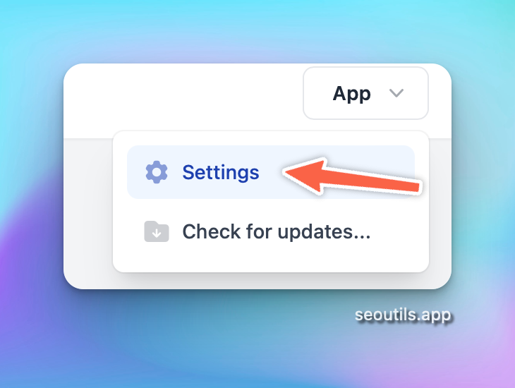Step 4: Open the SEO Utils app on your machine (Ensure that it is version 1.1.0 or newer). Go to the Settings page.