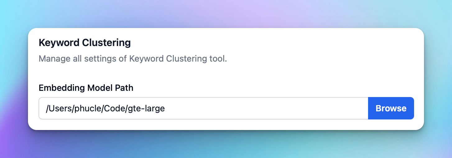 Scroll down to the Keyword Clustering section and enter the path to the downloaded model on your machine. Then hit the Save button.